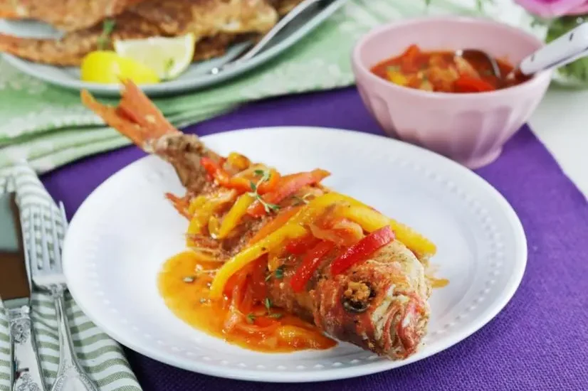 Whole Red Snapper, seasoned and fried to golden perfection, then topped with our signature Creole sauce — a savory blend of tomatoes, bell peppers, onions, garlic, and bold Haitian spices. Crispy on the outside, tender on the inside, and bursting with vibrant, tangy flavor in every bite.